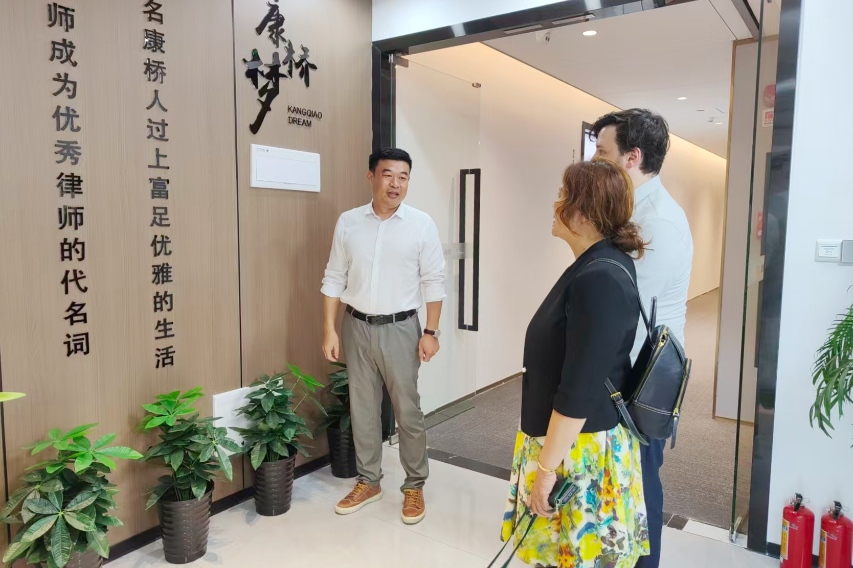 Kathy Qiu律师一行首先在康桥管委会成员、高级合伙人、海口分所负责人付健的陪同下参观了康桥海口分所的办公环境。付健律师详细介绍了康桥的发展历史、业务板块,以及文化立所和总分所一体化两大特色的核心内容和优势。