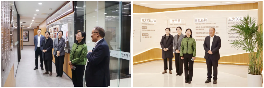 毕惠岩专委一行首先在张巧良代表的陪同下参观了康桥的办公环境。参观过程中,张巧良代表介绍了康桥的一体化管理模式、文化理念、核心价值观、党建工作以及康桥在促进良法善治、承担社会责任等方面所开展的工作。